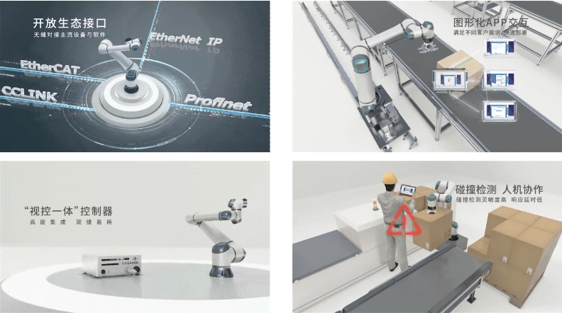自研伺服與關節(jié)控制系統(tǒng)高度集成,為用戶提供高可靠、低門檻的柔性自動化方案。