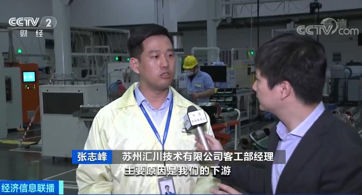 蘇州匯川技術有限公司客工部經理 張志峰:主要原因是我們的下游,我們這些設備制造商,他們的訂單增加了,比如說做紡織機器的,做3C行業的等等這些行業在回暖。