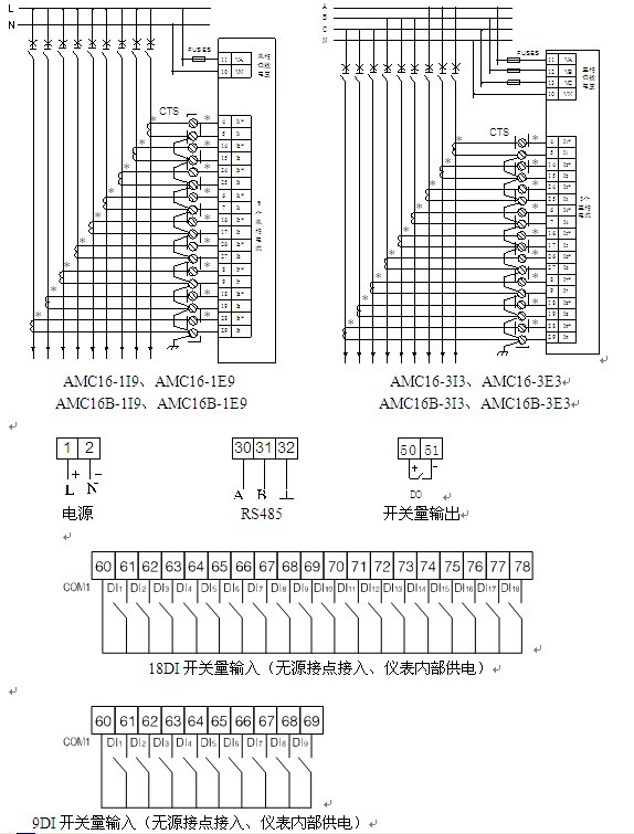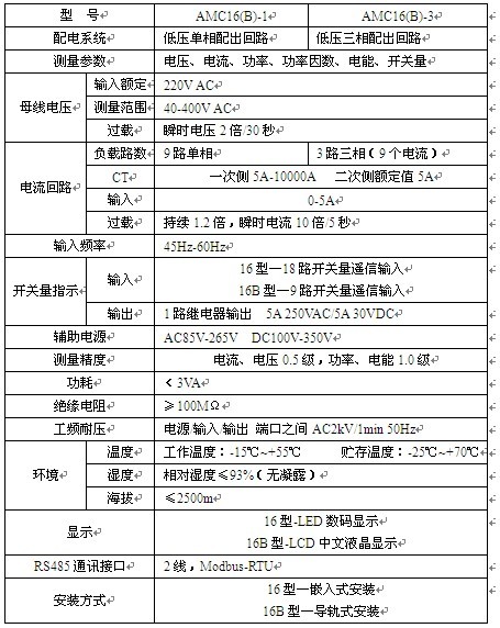 測量參數:3路三相電流、母線電壓、3路三相功率和電能(含分元功率)、18路開關狀態檢測和1路越限報警輸出
