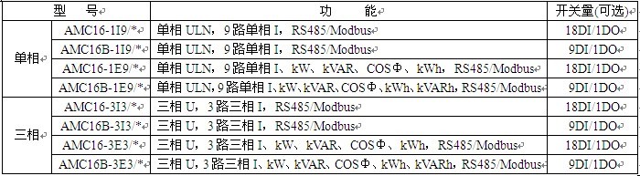 AMC16-1I6、AMC16-1E6、AMC16-1E6/K、AMC16-1I9、AMC16-1E9、AMC16-1E9/K、AMC16-3I3、AMC16-3E3、AMC16-3E3/K
