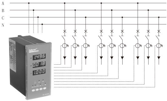 AMC16多回路監控裝置主要應用于多個配出回路的電參數的監測,它將回路中的母線電壓、多個配出回路的電流、功率、電能集中測量和顯示,并可對各個回路的開關狀態集中監測和顯示,以上各參量還可通訊輸出,實現了對監控要求較簡單的配電出線回路的集中測量和監視。一個AMC16多回路監控裝置就能實現對多個回路的電參量的測量和開關狀態的監測,大大方便了系統的接線、安裝、調試;節約了用戶的投資,降低了系統成本。