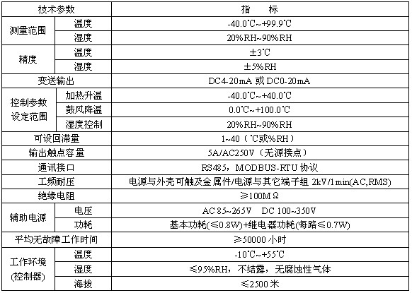 ● 控制器常規為環境濕度≥85%RH加熱除濕控制啟動,溫度≤5℃加熱升溫控制啟動,≥40℃鼓風降溫控制啟動;