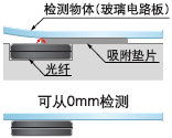 由于采用獨特的大透鏡,即便是薄玻璃電路板也能從側面直接檢測。另外,由于檢測范圍寬(25±12.5mm),即使玻璃電路板在不規則位置上也可進行穩定繪圖。