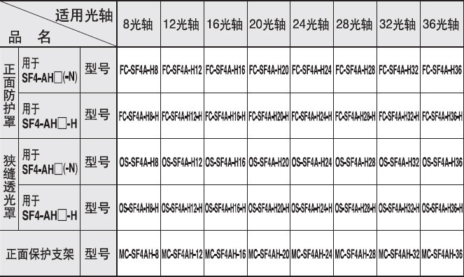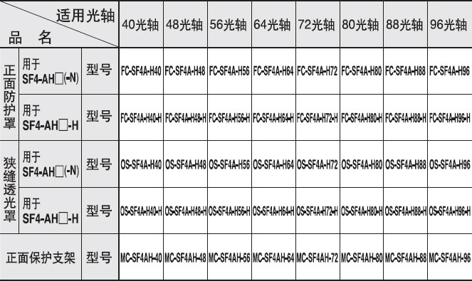 注:以上型號僅為單件而非成套部件。投光器/受光器都安裝需2個(2套)。 |
