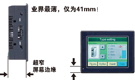 厚度僅為41mm,堪稱業界最薄機體,組裝時不占空間。同時液晶的邊緣部分也是同類產品中最薄的,5.7吋液晶機中最緊湊機體。