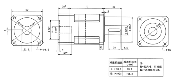 (4)3:1到10:1減速機傳送效率為89%;15:1到100:1減速機傳送效率為84%。 |
