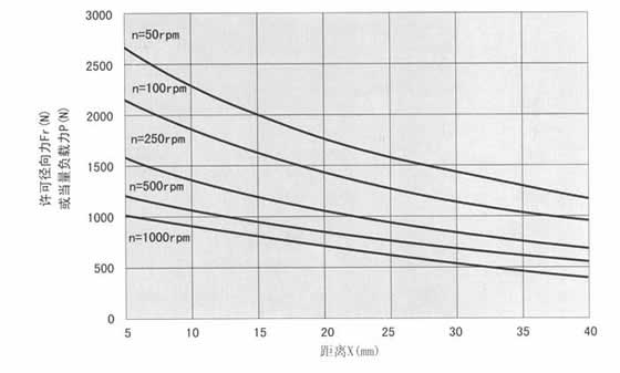 (1)上述(表2)表示軸向力Fa=0時的許可徑向力,(表3)表示徑向力Fr=0時的許可軸由力,當即有徑向力又有軸向力時,(表2)表示當量許可負載力P,這時可用公式P=0.56Fr+2Fa對實際徑向力和實際軸向力進行驗算。