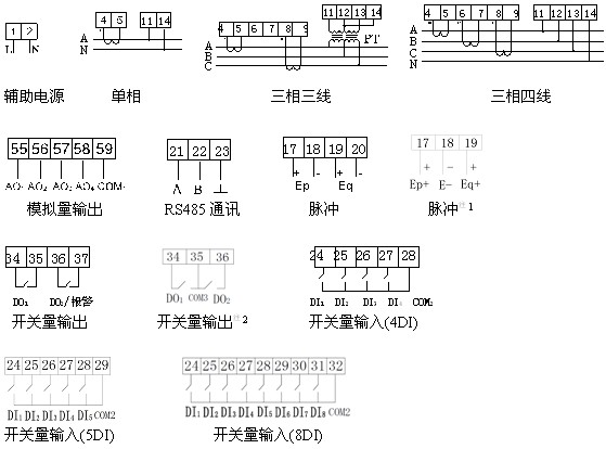 注1:適用于單相電能表及開關量為8DI/2DO的場合;