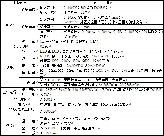 儀表可具有RS-485 通訊接口,采用Modbus-RTU 協議;可帶模擬量輸出、繼電器報警輸出、開關量輸入/輸出。根據不同要求,通過儀表面板按鍵,對變比、報警、通訊、開關量輸出進行設置與控制。