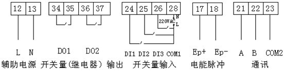 繼電器輸出(J1為脫扣輸出,J2、J3、J4為報警輸出)