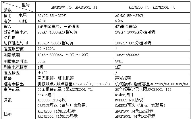 ● ARCM200L-J1、ARCM200L-J4具有事件存儲功能,報警器能夠記錄報警發(fā)生的時間、類型、參數(shù),根據(jù)報警記錄可以分析現(xiàn)場的用電情況,為消除故障提供依據(jù);