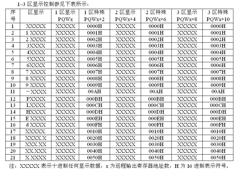 ● 從上至下共3組00000~99999顯示范圍,每組均帶正負號共15個擴展特殊符號顯示;