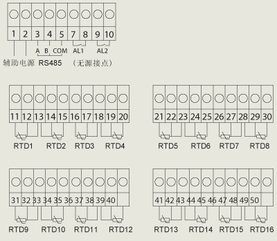 ARTM8、ARTM16型分別測量8通道和16通道熱電阻溫度,也可以屏蔽其中任意通道;