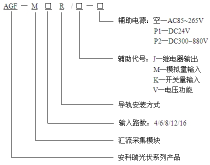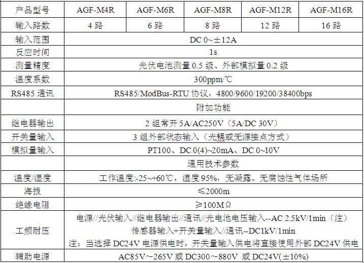 AGFR系列光伏匯流采集裝置是專門應用于智能光伏匯流箱,用于監測光伏電池陣列中電池板運行狀態,光伏電池電流測量,匯流箱中防雷器狀態采集、直流斷路器狀態采集、繼電器接點輸出,帶有風速、溫度、輻照儀等傳感器接口,裝置帶有RS485接口可以把測量和采集到的數據和設備狀態上傳。