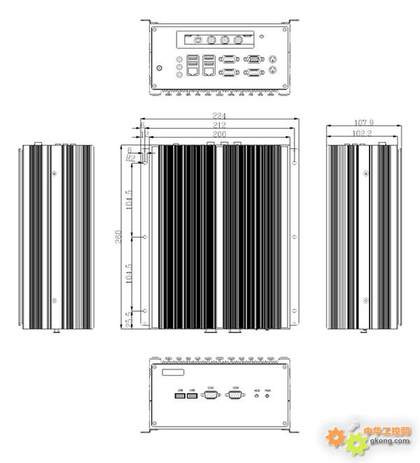 - VGA / 2千兆網口 / 4USB接口 / 音頻/ 5COM