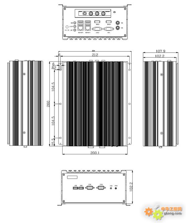 - VGA /2*HDMI / 2個千兆網口/ 6*USB / 音頻/ 2*COM