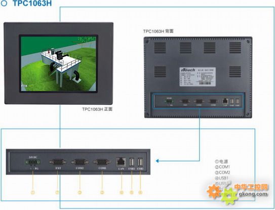 TPC1063H,是一套以嵌入式低功耗CPU為核心(主頻400MHz)的高性能嵌入式一體化工控機。該產品設計采用了10.4英寸高亮度TFT液晶顯示屏(分辨率640×480),四線電阻式觸摸屏(分辨率1024×1024)。