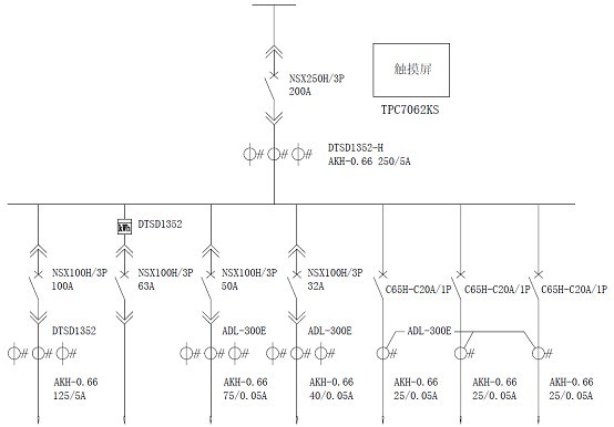電源進線監(jiān)控由顯示觸摸屏與DTSD1352-H組成。