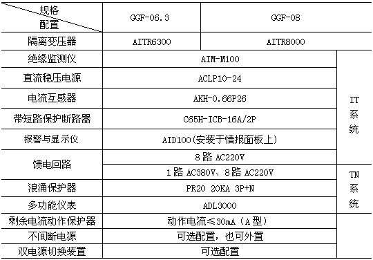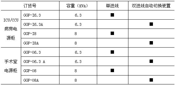 醫(yī)用隔離電源柜是針對醫(yī)療2類場所的供電需求而設計的具有局部IT系統(tǒng)的配電柜,IT系統(tǒng)裝設絕緣監(jiān)測裝置來監(jiān)測系統(tǒng)的絕緣狀況,各輸出回路采用了具有短路保護功能的斷路器;其它系統(tǒng)輸出回路則采用了具有漏電保護功能的斷路器。產品根據(jù)使用場所的不同分為GGF-O系列手術室用隔離電源柜和GGF-I系列ICU/CCU等病房用隔離電源柜兩大類,能夠很好的滿足各類手術室和重癥監(jiān)護室對電源安全性和可靠性的要求,并符合GB16895.24-2005/IEC60364-7-710:2002《建筑物電氣裝置第7-710部分:特殊裝置或場所的要求—醫(yī)療場所》和GB7251.1-2005/IEC 60439-1:1999《低壓成套開關設備和控制設備》等標準