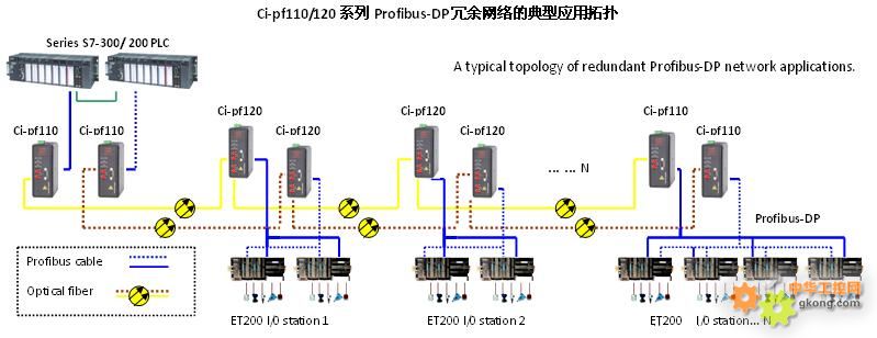 Ci-pf110/120系列產品是一款工業級Profibus-DP現場總線數據光端機,支持Profibus-DP協議, 通信速率0~6M(可選12M),單光口/雙光口鏈網支持。IP30防護等級,波浪紋鋁制加強機殼,35mmDIN導軌安裝,DC(9-30)V寬電源,具備繼電器告警輸出,雙電源冗余和隔離保護功能。 Ci-pf110支持一路光纖接口,一路數據接口,Ci-pf120支持兩路可級聯上下行光纖接口,一路數據接口。數據接口采用與Profibus-DP總線電纜接頭兼容的DB9F接口。