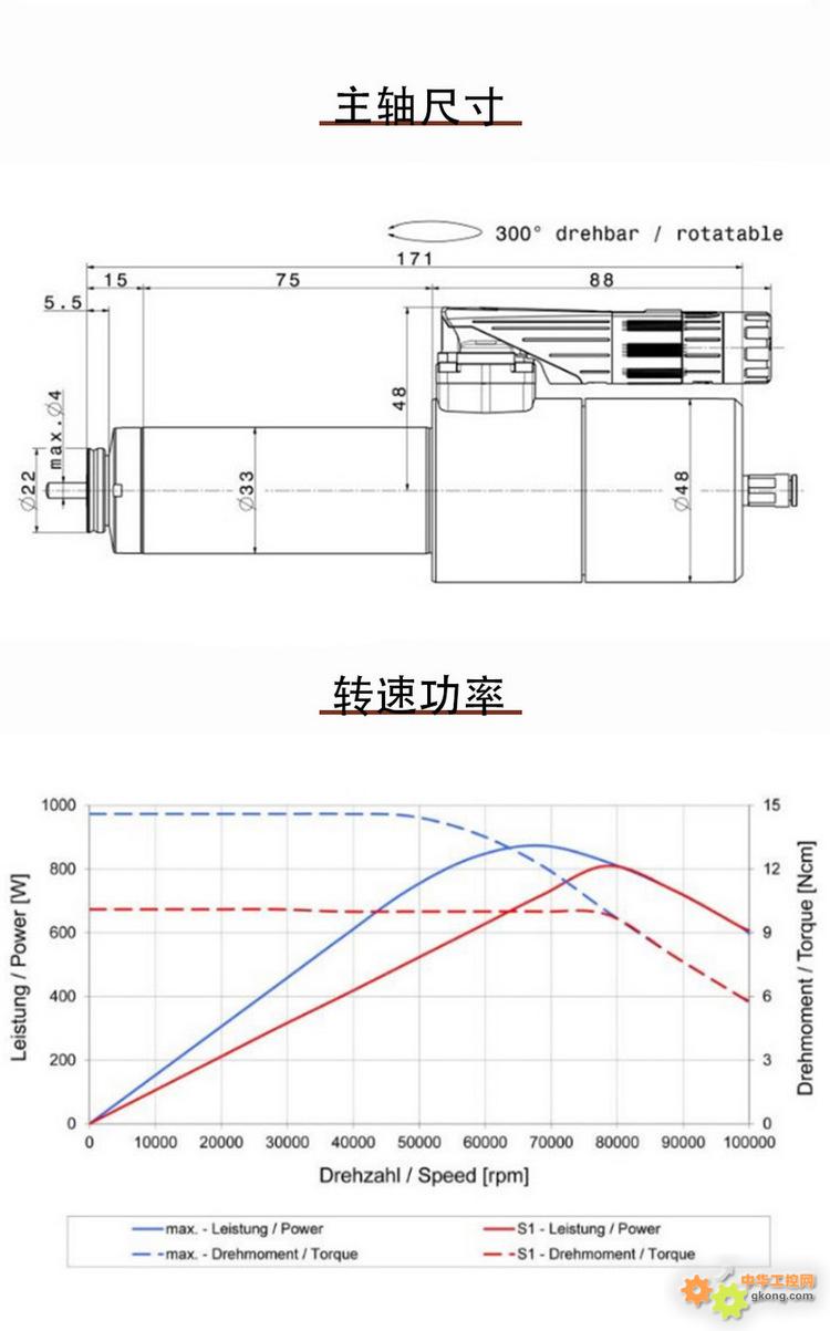4033 DC電主軸具備高精度、高轉速(100,000rpm)、大功率(450W)、大扭矩(5.2Ncm)以及可自動換刀等諸多優點,是一款性能全面的微型高速電主軸。采用無刷同步電機技術,使電機結構更加緊湊,運行更加平穩高效。在實際應用中,廣泛適用于鋁基板切割,機床鉆、銑、磨、雕刻等多用途精密加工。無論是復雜的加工工藝,還是對加工精度和效率有嚴苛要求的應用場景,都能游刃有余地應對。
