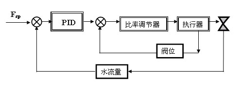 理論上理想的二冷配水控制曲線是一條二次曲線:F=aV2+bV+c,但是實現起來非常困難。為此,我們采用直線仿真曲線技術:采用三條斜率不同的直線來模擬二次曲線,根據當前的拉速及三條直線所對應的a、b值分別計算出三個配水量F1、F2、F3,然后取其最大值作為當前的實際給定值:Fsp = Max{F1,F2,F3}(如圖2所示)。此外,軟件上通過PID指令完成七段回路儀表調節控制(控制框圖見圖3)。