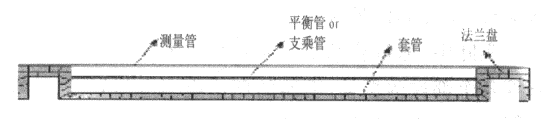 如圖2所示,是單直管科氏質(zhì)量流量計(jì)的一種方案,由測量管、支承管、套管、電磁激振器、拾振器(電磁振動傳感器)和聯(lián)接法蘭等組成。