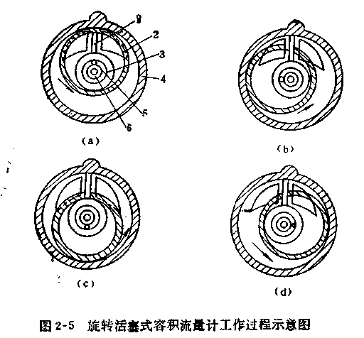 旋轉活塞式(也稱為擺動活塞式)容積流量計的結構與工作原理可見圖2—5所示.