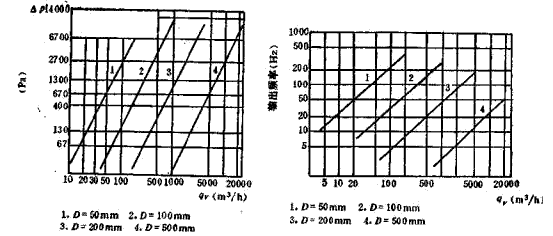 圖3-14 渦街流量計的壓力損失特性 圖3-15 渦街流量計頻率特性
