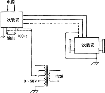應在地與輸出端子之間施加與主電源頻率相同的0~50V(有效值)可調電位差或由制造廠規定的最大電壓。應進行干擾電壓與主電源電壓同相和正交兩個系列的試驗。誤差應以相對于電壓的輸出量程的百分數表示。