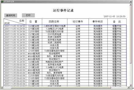 系統對所有用戶操作、開關變位、參量越限及其它用戶實際需求的事件均具有詳細的記錄功能,包括事件發生的時間位置,當前值班人員事件是否確認等信息,對開關變位、參量越限等信息還具有聲音報警功能,同時自動對運行設備發送控制指令或提示值班人員迅速排除故障。