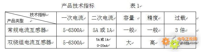 3.主要技術指標 與常規測量用電流互感器相比,產品主要技術指標見表1