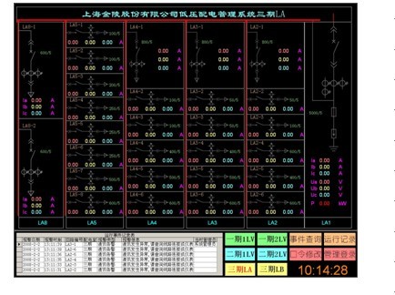 系統可實時和定時采集現場設備的各電參量及開關量狀態(包括三相電壓、電流、功率、功率因數、頻率、電能、溫度、開關位置、設備運行狀態等),將采集到的數據或直接顯示、或通過統計計算生成新的直觀的數據信息再顯示(總系統功率、負荷最大值、功率因數上下限等),并對重要信息量進行數據庫存儲。對現場設備的操作(如合/分閘控制、電容投切等)可進行本地手動操作和遠程控制操作等,并具有權限保護,防誤閉鎖功能,可根據開關量和模擬量的組合實現閉鎖。