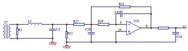 2.1 主控CPU ACM的CPU采用ST公司的基于ARM Cortex-M3架構內核的32位處理器STM32F103R8T6,時鐘頻率最高可達72MHz,內置64K的Flash、20K的RAM、12位AD、4個16位定時器、3路USART通訊口等多種資源,具有極高的性價比。 2.2 電源 電源是一臺設備能否正常、穩定、可靠工作的關鍵部分,ACM采用本公司常用的通用開關電源模塊。該電源模塊輸入電壓為AC85V~265V,輸入頻率45Hz~60Hz,具有多路隔離電壓輸出,滿足多種功能對不同供電電壓的要求。輸出電壓穩定、故障率小,輸出紋波 <1%。具有過壓、過流保護。該模塊經實際現場使用,具有很高的穩定性、可靠性和抗干擾能力。 2.3 信號采集電路(圖3) 信號采集電路采用互感器隔離輸入,將交流信號抬高后,通過放大電路將信號進行放大,最后將采樣信號送入CPU進行A/D轉化。