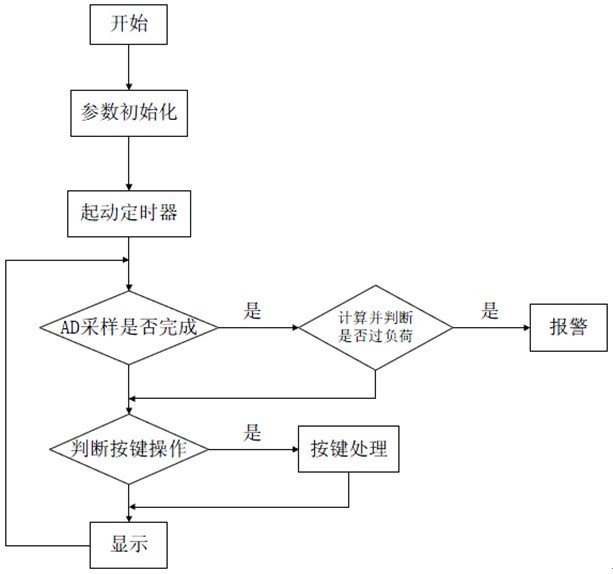 3 軟件設計 ACM的軟件流程主要包括A/D子程序、保護子程序、計算子程序、顯示子程序、按鍵處理子程序、通訊子程序等子程序,由于程序內容較多,現給出主程序流程(圖6)