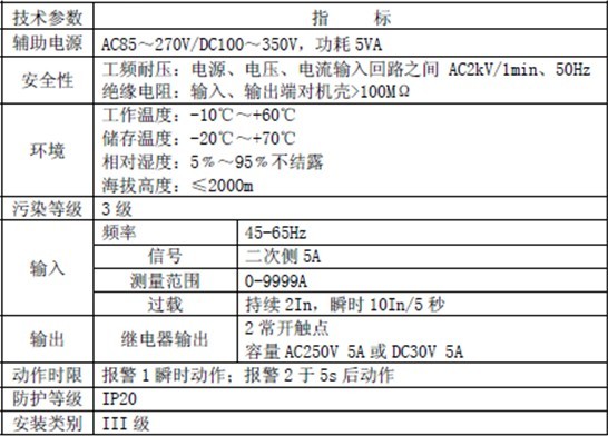5 產品特點 監控裝置采用真有效值的計算方法、可測量三相電流、三相電壓、四象限有功、無功、功率因數、漏電流、頻率、2~15次諧波等參數,在較寬的頻率范圍內實現了較高的精度。集成有多種類型斷路器的動作特性。該裝置集低壓電測儀表的測量功能和線路監控功能于一體,是重要負荷回路理想的監控元件。 其主要技術指標見下表。