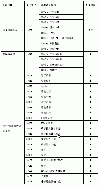 英威滕變頻器采用Modbus通訊協(xié)議,根據(jù)英威滕變頻器說明書與通訊有關的主要參數(shù)如下: